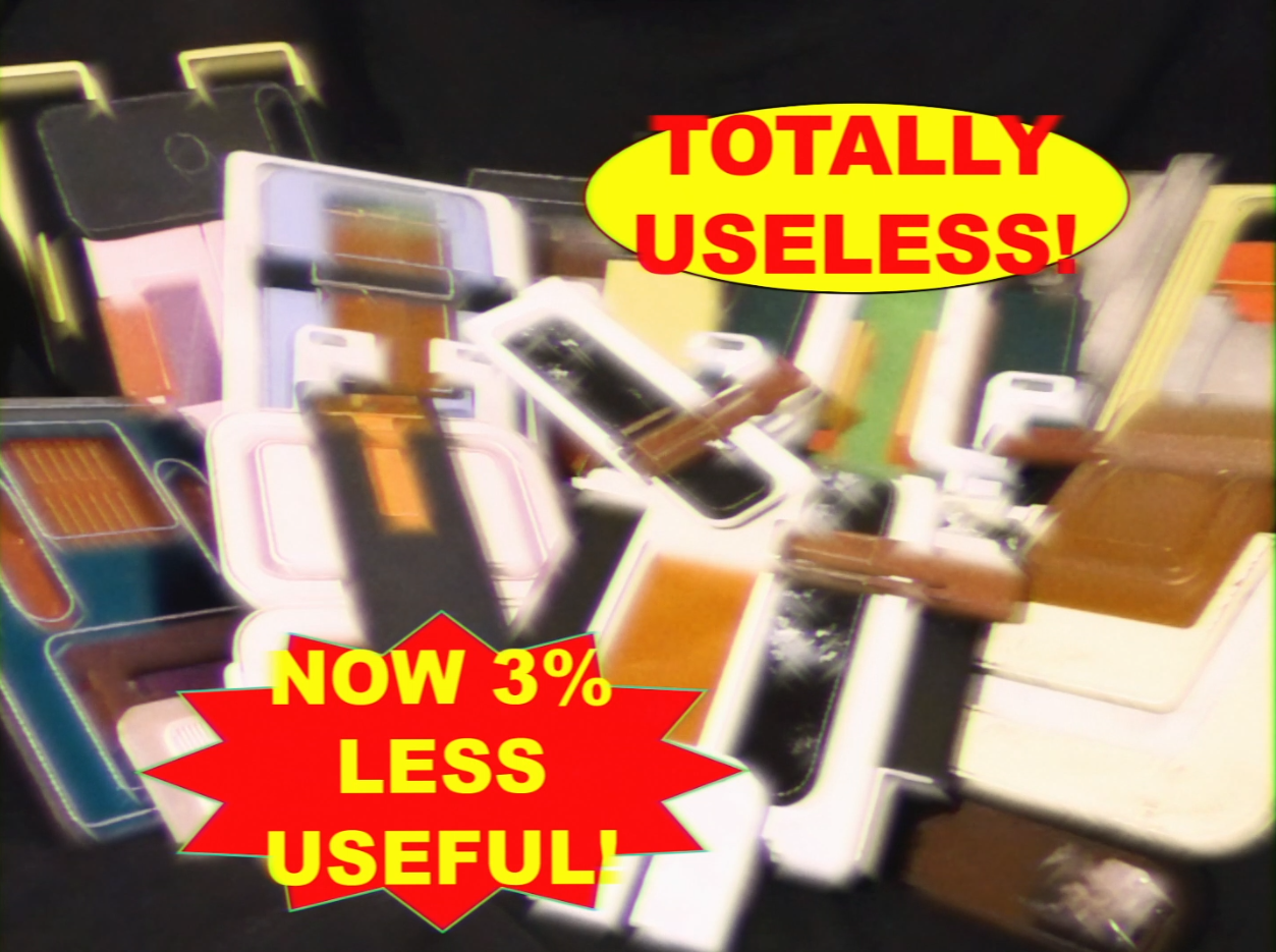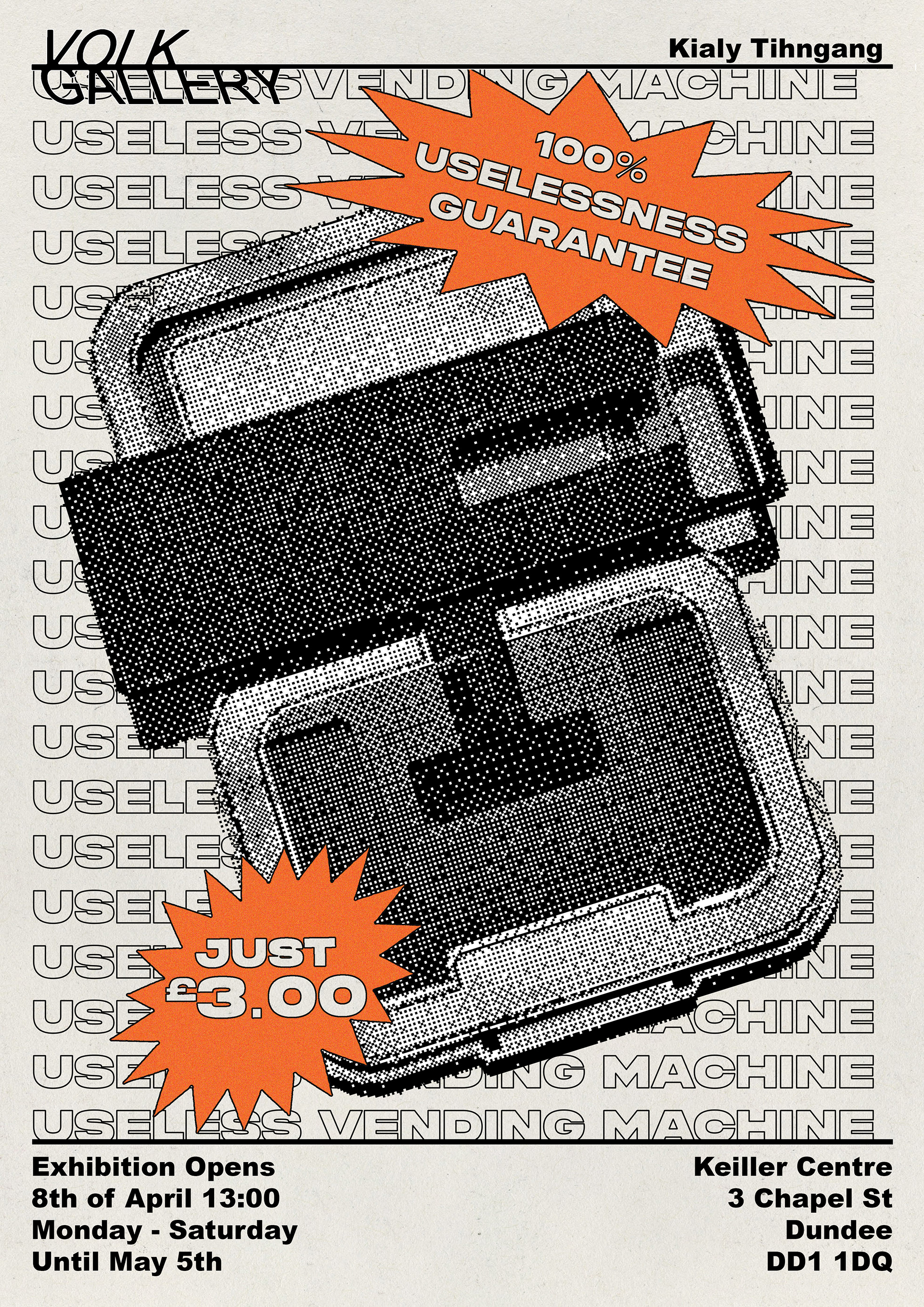 Volk Gallery is proud to present the work of Kialy Tihngang. Each Volk artist is given a size limit and budget and left to their own devices. With this brief, Tihngang has produced a series Top Trump-style trading cards presented in plastic sleeves reminiscent of those used by rabid collectors. Said series reflects Tihngang’s graduate work entitled ‘Useless Machines’: a series of interlocking panels, wrapped in waste-fabrics and a moving image piece advertising them. It forms a darkly humorous response to electronic waste dumping, a neocolonialist practice that increasingly affects African countries. Each scanned card reveals a GIF version of each design.