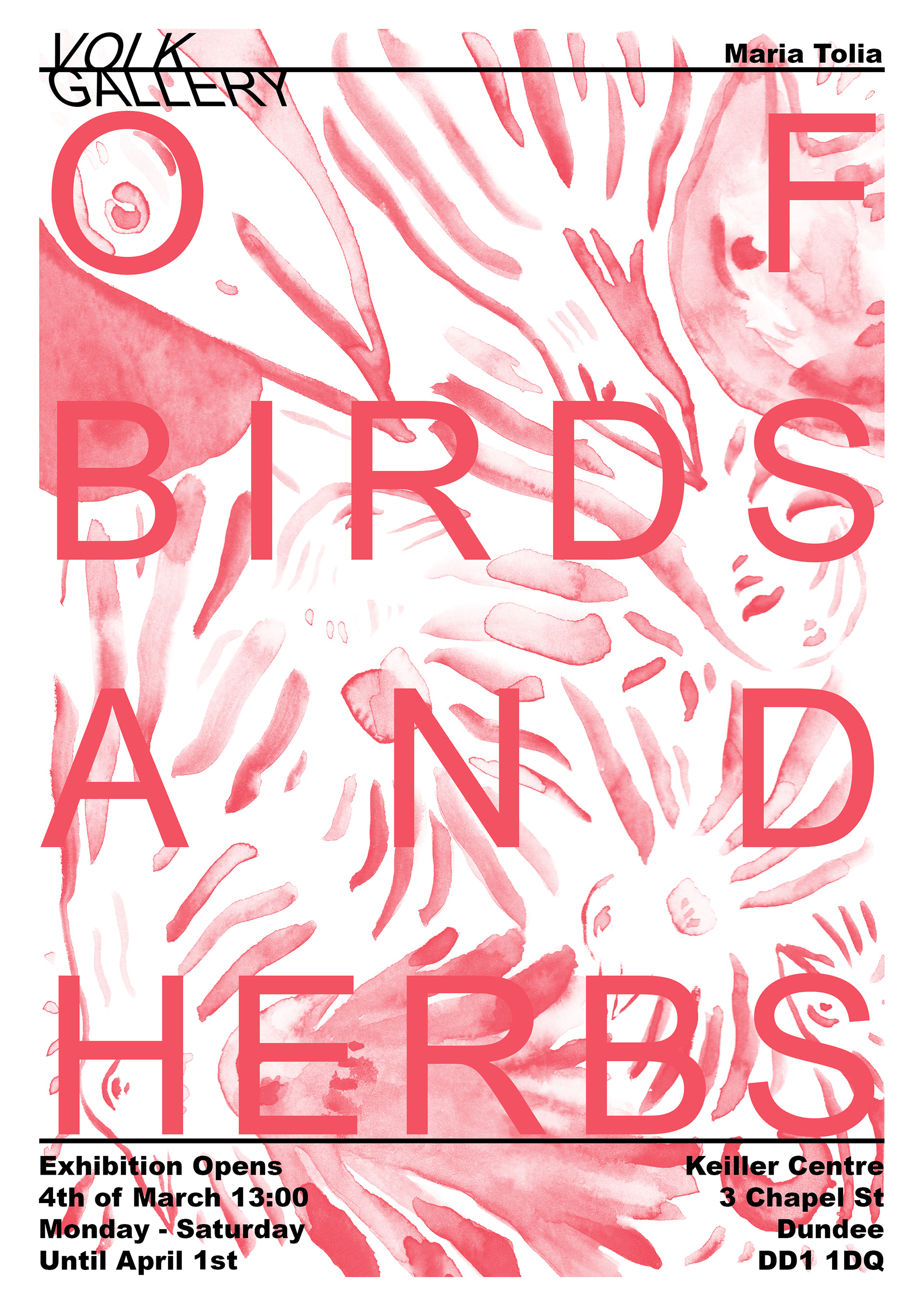 Volk Gallery is proud to present the work of Maria Tolia. Each Volk artist is given a size limit and budget and left to their own devices. With this brief, Tolia has produced work inspired by colours and scents from a recent trip to Spain. Inside each pack you’ll find a bundle of Andalucían herbs foraged by Tolia and packed in repurposed teabags. This is accompanied by a small artist’s print. During the trip, Tolia dreamt of birds falling off trees during first light, drinking in the day.
