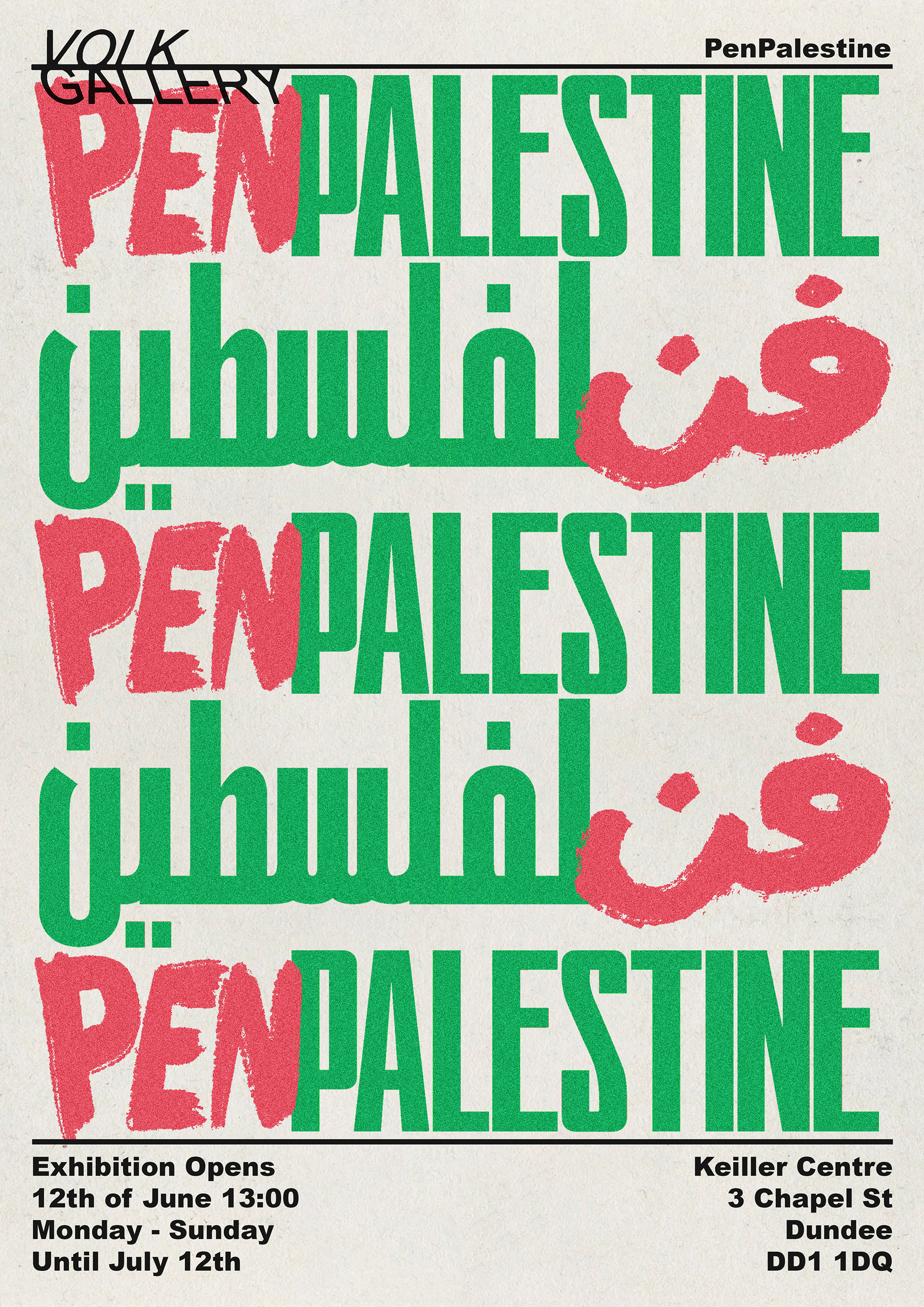 Volk Gallery is proud to present the work of PenPalestine, an ongoing postcard project produced in solidarity with Gaza. Developed in response to ongoing digital activisim endeavours, PenPalestine sees something human in tangible solidarity. Their online store features riso postcards from artists and designers across the world, from Jordan to Italy, from the USA to Egypt, all printed in striking red, green and black. 100% of proceeds will be donated to Medical Aid for Palestinians.